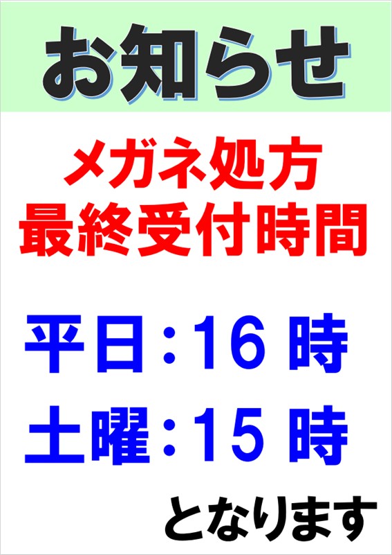 (新規コンタクトレンズ作成、眼鏡合わせはできません)
