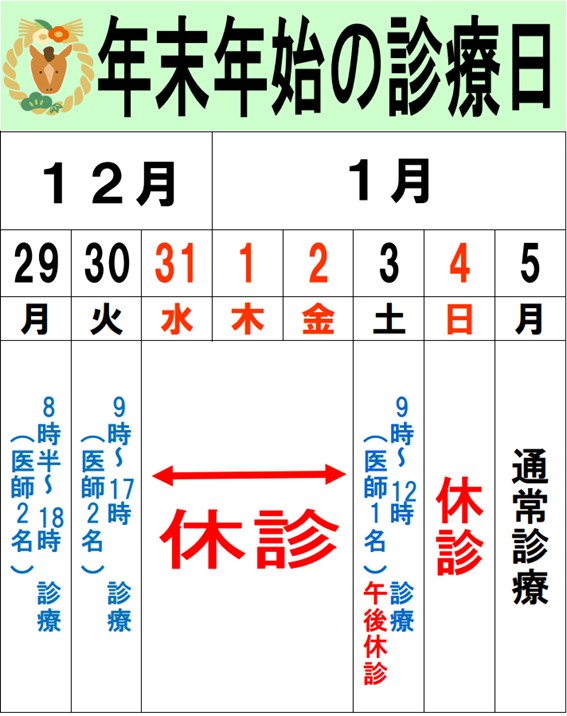 ④ 祝日の診察は午前中のみとなります